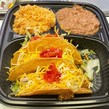 Hard Shell Tacos and refried beans and Mexican Rice!